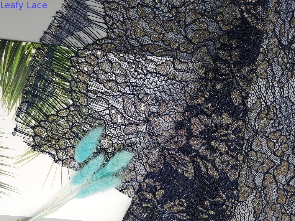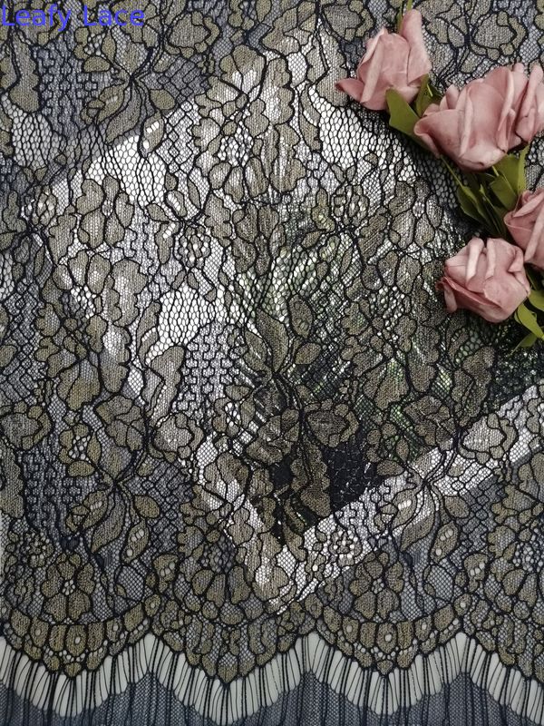 Empfindliche französische Chantilly-Wimper metallisches Lurex schnüren sich Gewebe mit Kammmuschel für Wowen-Kleiderkleiderspezifikationen: