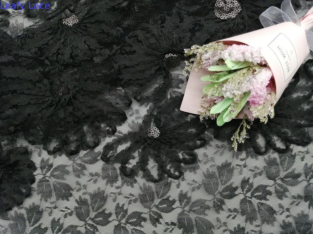 - Schwarze Paillette schnüren sich Stickerei-Gewebe entkernte Stickerei-Partei-Spitze der Applikations-3D für Frauen-lange Rock-Kleiderkleiderkleine Mädchen-Kleider, Heimtextilien, Vorhang, Bettwäsche-Artikel, Kleider, Hüte, Brautkleider, Blusen, etc.