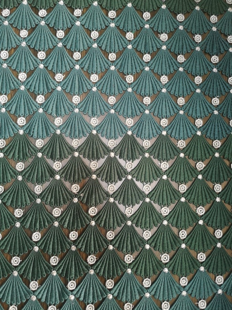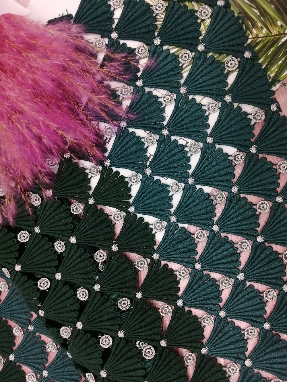 Chemische Spitze grünes Stickerei-Häkelspitze-Gewebe-Shells Lurex wasserlösliches für Heimtextilien, Vorhang, Bettwäsche-Artikel, Kleider, Hüte, Brautkleider, Blusen, Garments Dame, Tischdecke, kleine Mädchen-Kleider, arbeiten weibliche Schuhe, Hosen, Hose, kurze Hosen, Jacken, etc. um.