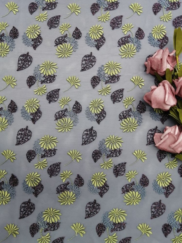 Art: | Farbiges Voile-Stickerei-Gewebe | Eigenschaft: | Metallisches Tulle |