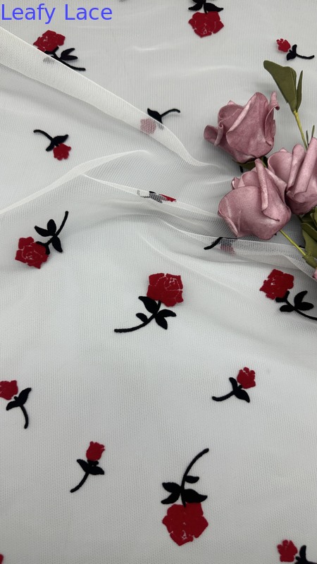 | Hervorheben: | flocked mesh lace fabric,traditional rose lace fabric,elegant gown mesh fabric |